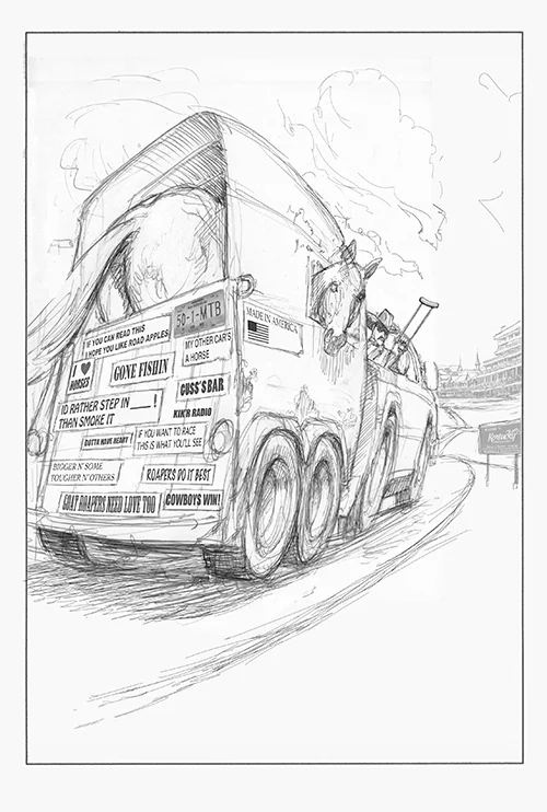 Logo design and One Sheet comp ideas for the movie 50 to 1. My good friend Chris Consani did these great comp sketches and the buckle illustration.